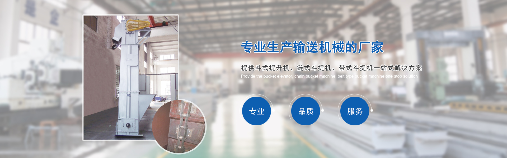專業(yè)生產(chǎn)輸送機(jī)械,各種型號(hào)的斗式提升機(jī)、鏈?zhǔn)蕉诽釞C(jī)、帶式斗提機(jī)